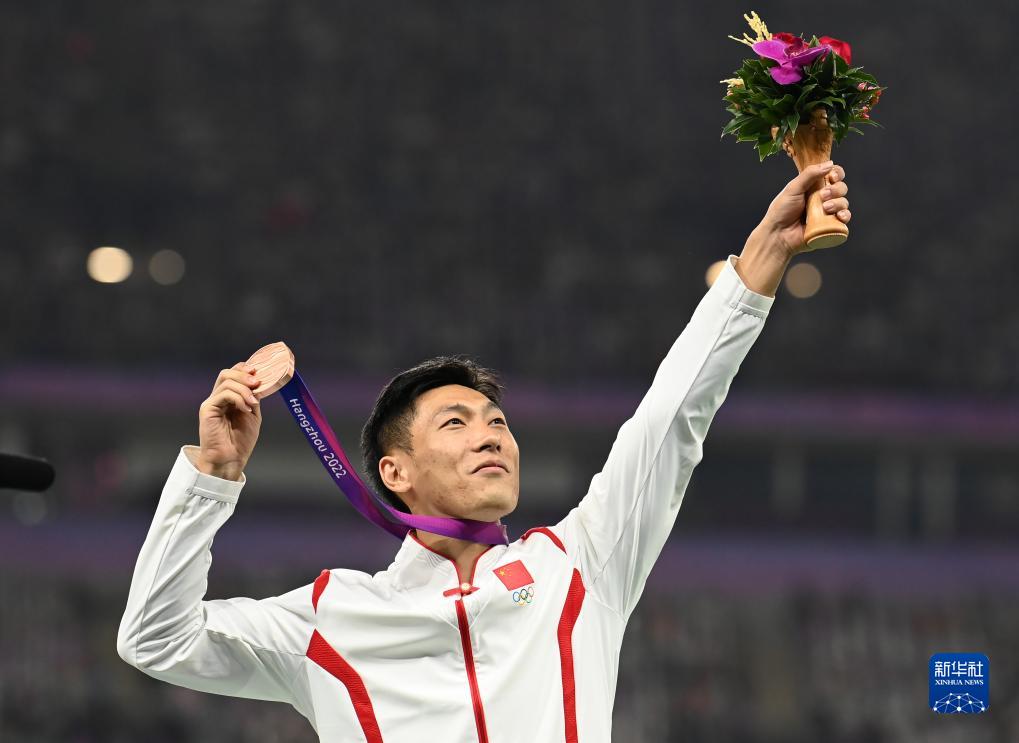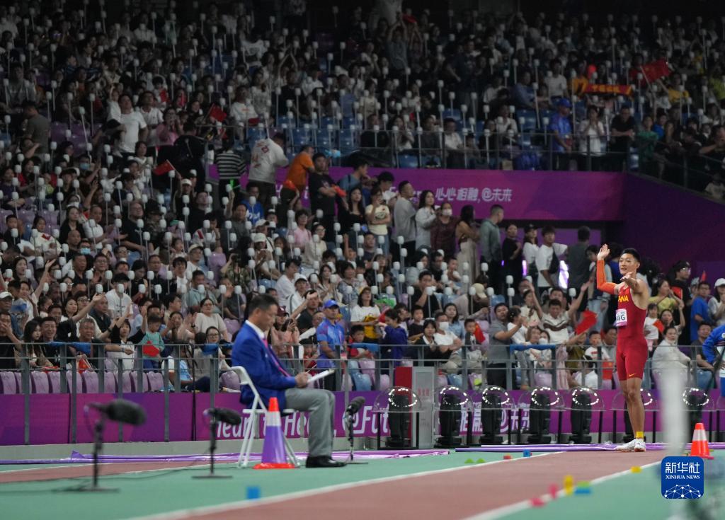 当日,杭州亚运会田径项目男子跳远决赛在杭州奥体中心体育场举行。