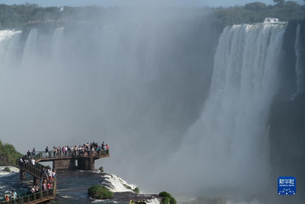 10月1日,游客在巴西巴拉那州伊瓜苏大瀑布景区内参观。