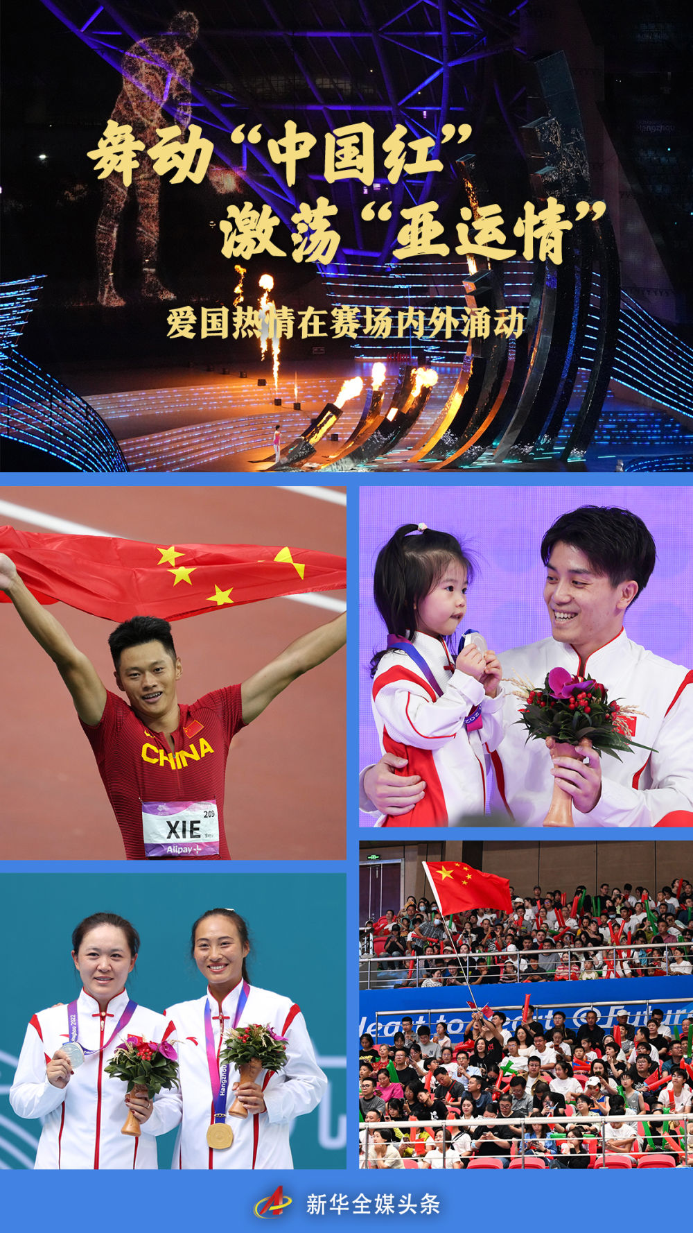 这是杭州亚运会上一场场激动人心的比赛,这是赛场内外一幕幕感人至深的瞬间。竞技赛场总能激发人们强烈的爱国情感,带给人们强大的奋斗力量。杭州亚运激战正酣,一抹抹“中国红”在亚运赛场舞动;亚运荣光闪耀神州,一份份“亚运情”在人们心间激荡。