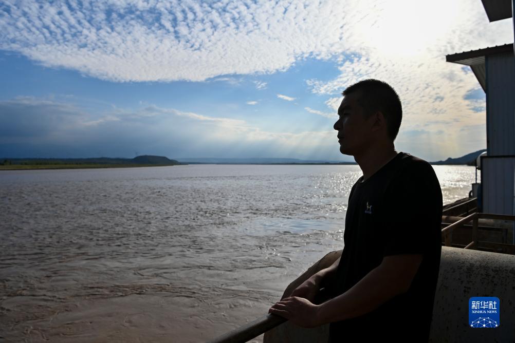 工作人员在大禹渡扬水工程监测黄河水位变化(9月21日摄)。