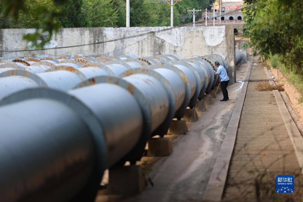 工作人员在大禹渡扬水工程对管道进行养护(9月21日摄)。