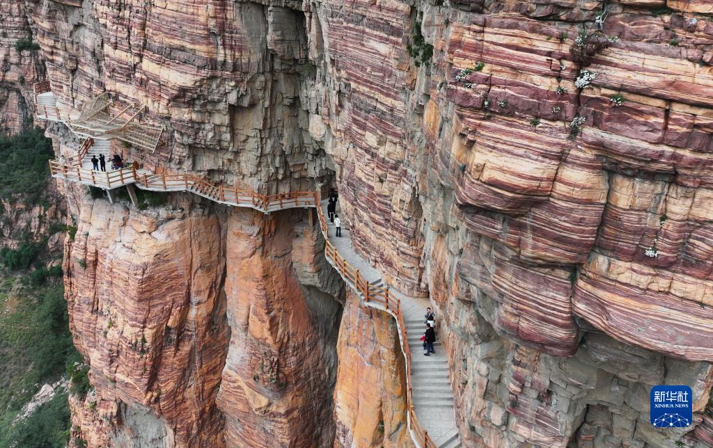 10月2日,游客在河北省武安市东太行景区观光(无人机照片)。