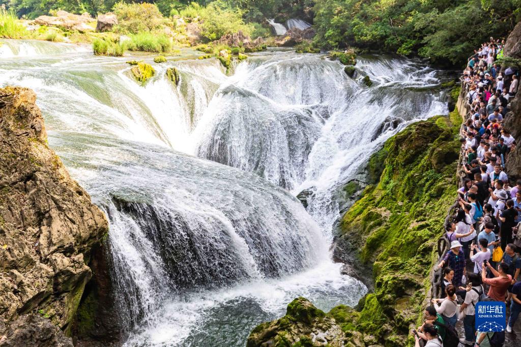 10月3日,游客在贵州省安顺市黄果树瀑布景区游玩。