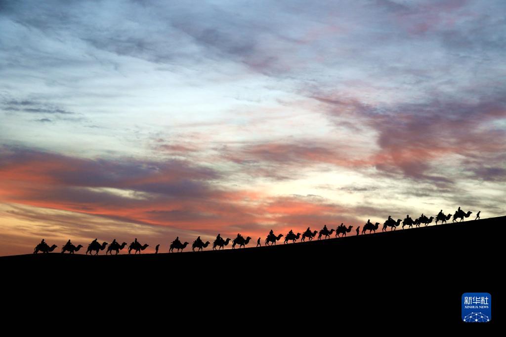 甘肃敦煌:景区旅游迎高峰 骆驼红绿灯畅交通