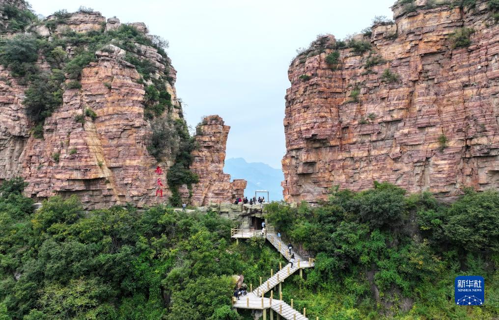 10月2日,游客在河北省武安市东太行景区观光(无人机照片)。