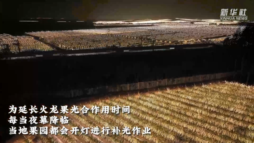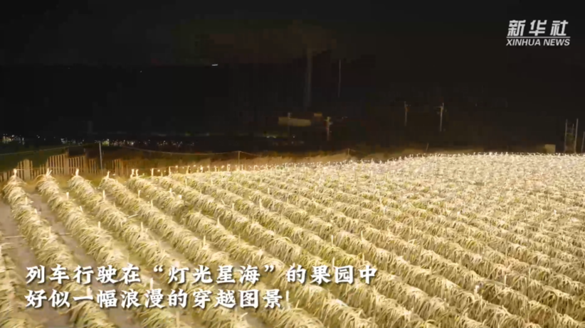 中秋国庆假期,在位于广西南宁市隆安县的全国最大火龙果连片种植基地,为延长火龙果光合作用时间,每当夜幕降临,当地果园都会开灯进行补光作业。夜晚当列车驶过种植基地时,车上乘客都会被景色吸引,纷纷拍照记录。列车行驶在“灯光星海”的果园中,好似一幅浪漫的穿越图景。