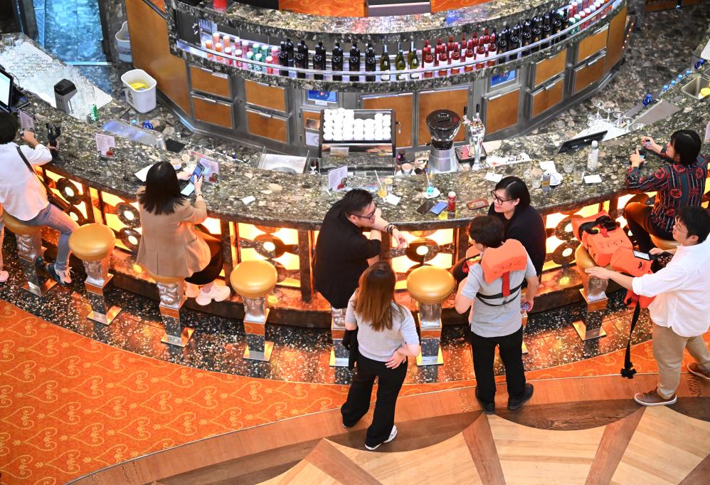 9月27日,游客在中国船舶集团旗下爱达邮轮“地中海”号邮轮上。新华社记者 赵子硕 摄