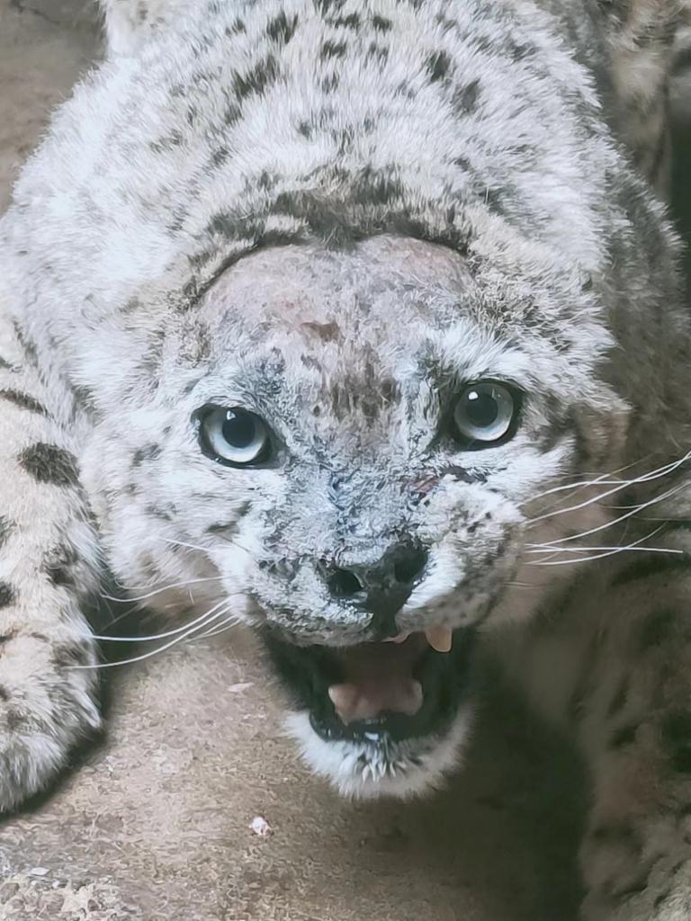 这是接受救护后的雪豹“凌不服”。(西宁市野生动物园供图)