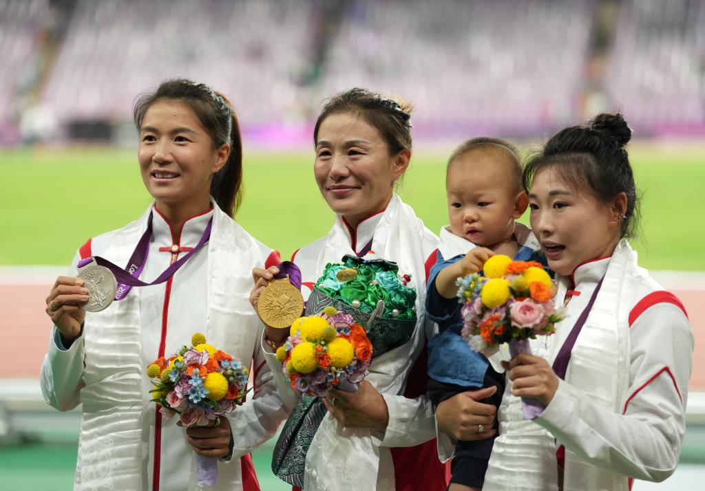 新华社杭州10月4日电(记者王浩明、吴俊宽、李典、陈晨)杭州奥林匹克体育中心体育场,万人瞩目,切阳什姐登上领奖台,当国歌奏响,她再也抑制不住,泪水夺眶而出。