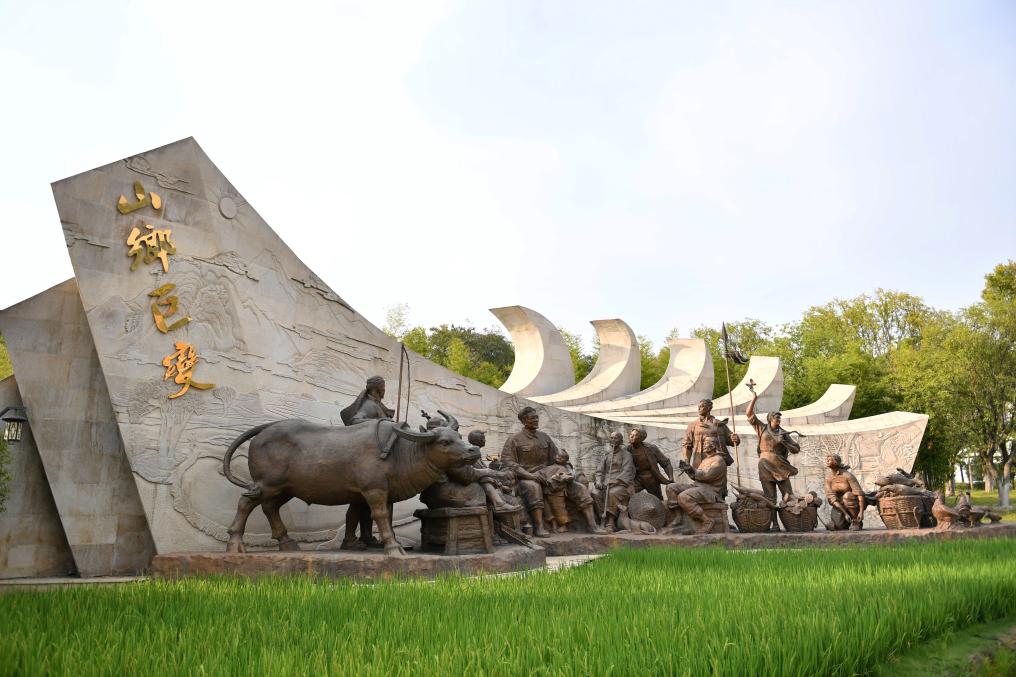 图为湖南省益阳市谢林港镇清溪村清溪广场上的雕塑作品。新华社记者 陈振海 摄