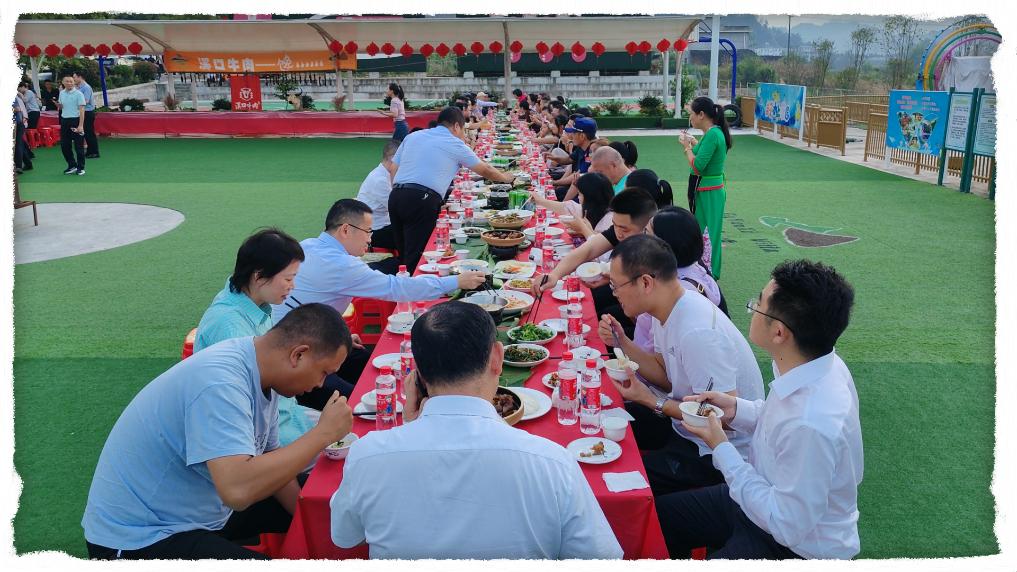 图为在湖南省慈利县溪口镇樟树村举办的“全牛宴”。(朱渊 摄)