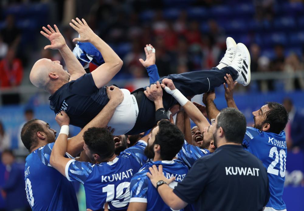 当日,在浙江工商大学文体中心进行的杭州亚运会手球男子铜牌赛中,科威特队以31比30战胜日本队。新华社记者 贾浩成 摄