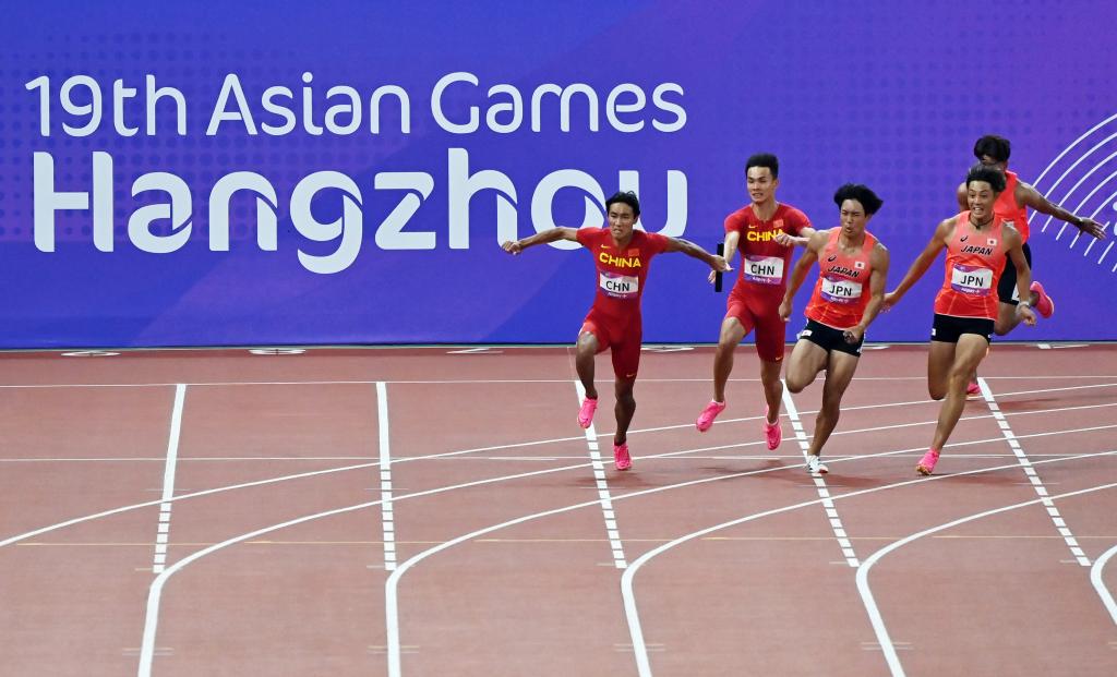 3日晚杭州亚运会男子4X100米接力决赛现场,当严海滨在最后一个弯道将接力棒递给陈佳鹏,全场观众的心悬了起来。由陈冠锋、谢震业、严海滨、陈佳鹏组成的中国队已经跑到最后一程。此时,陈佳鹏落后日本选手宇野胜翔接近两个身位。