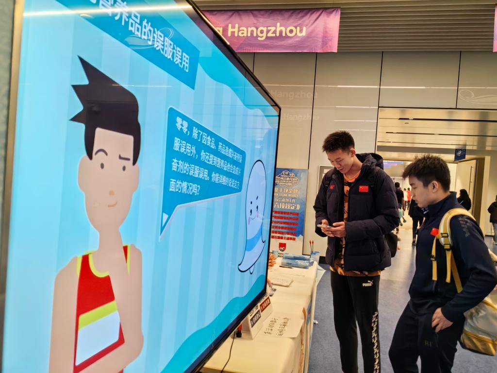 2023年5月,在杭州奥体中心举行的全国游泳冠军赛开展反兴奋剂教育拓展活动。