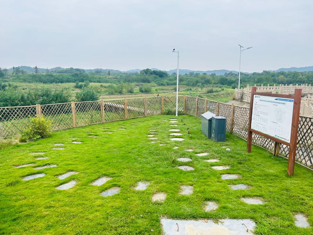 记者在河边看到,有一处种满绿草的空地,被篱笆环绕起来,满眼绿意与四周乡野风光融为一体。草地上有几个整齐排布的井盖,打开井盖,水声哗啦啦入耳,水流正排入地下装置。