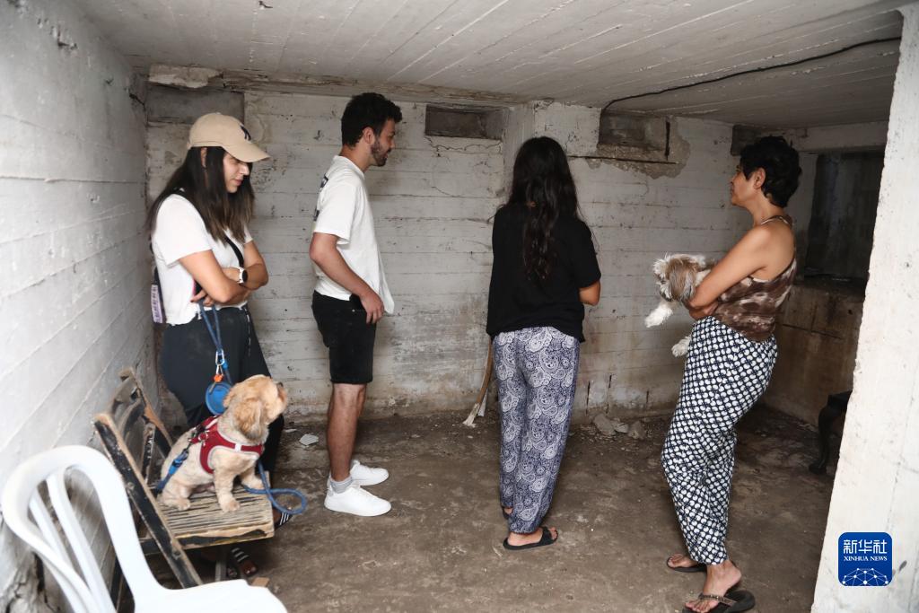 10月7日,防空警报响起后民众在以色列特拉维夫一处建筑内躲避。