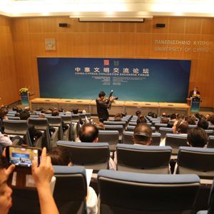 这是10月6日在塞浦路斯尼科西亚拍摄的中塞文明交流论坛现场。新华社记者 温新年 摄
