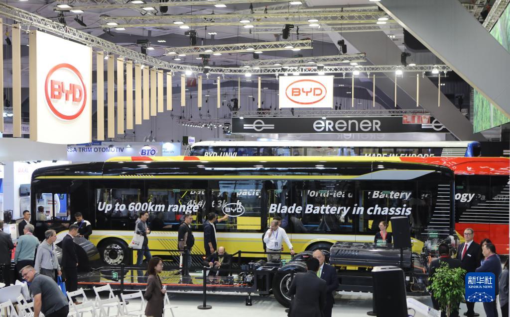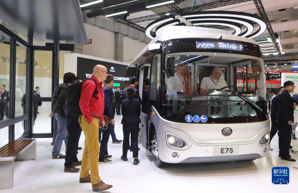 2023年世界客车博览会7日在比利时首都布鲁塞尔开幕。60多家来自中国的参展企业带来绿色出行“中国方案”,绿色低碳、电力驱动、智能网联等创新技术成为展会亮点。