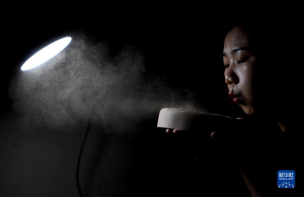 10月7日,游晓晓吹掉砚坯上的浮灰。