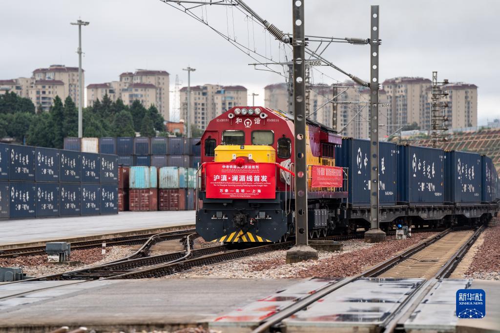10月8日,“沪滇·澜湄线”国际货运班列驶出昆明市王家营西站。