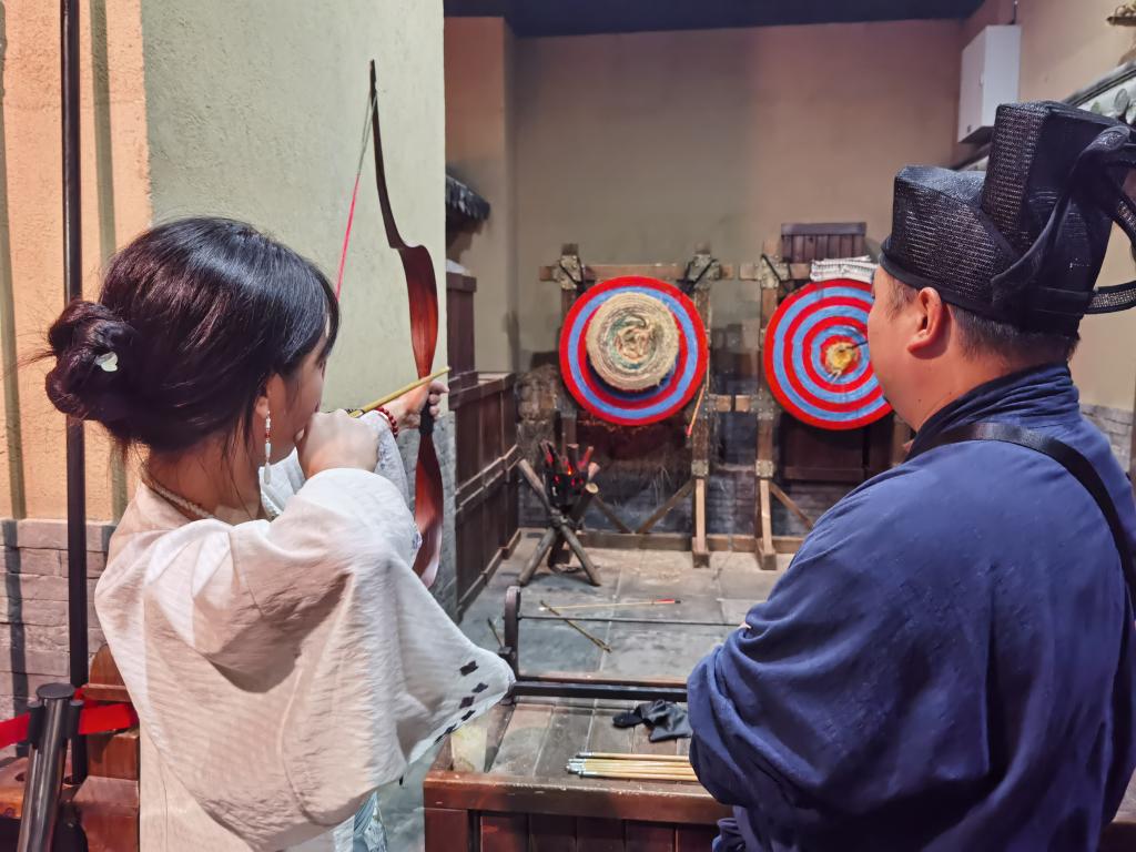 游客在潭州市集里体验射箭。新华社记者白田田 摄