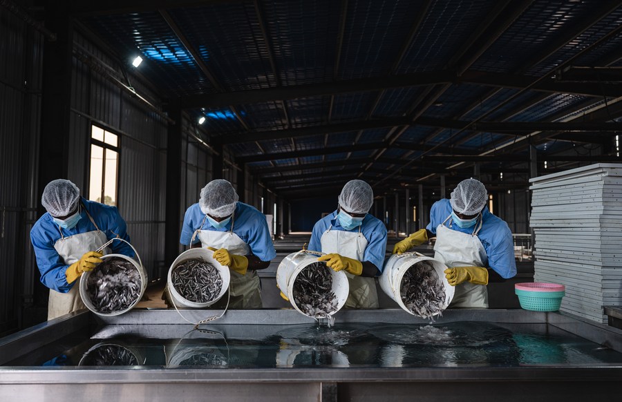 当地渔民杜拉告诉记者,与中企合作给他带来持续稳定的收入。2023年6月底,首批出口中国的300多公斤肯尼亚深海鳀鱼在湖南长沙举行的第三届中非经贸博览会上亮相。