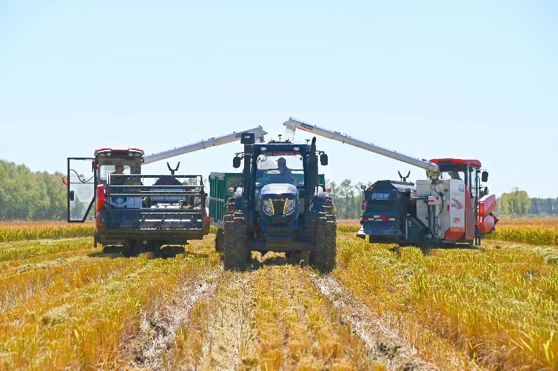 北大荒集团二九〇农场有限公司水稻收获现场。新华社发(徐磊摄)