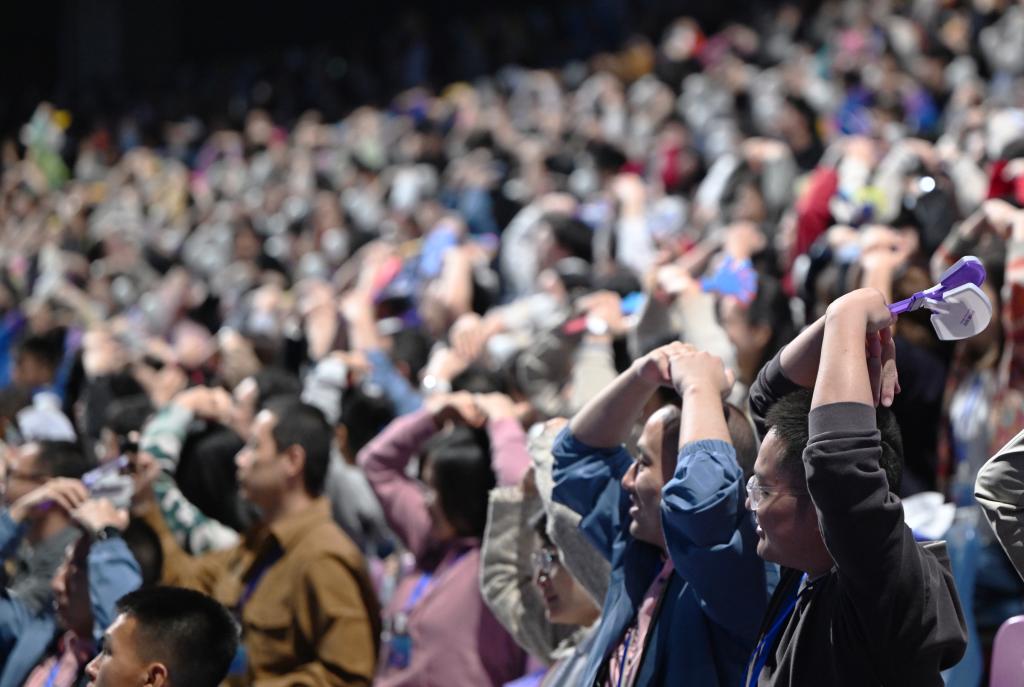 10月8日,观众在闭幕式上。当日,杭州第19届亚洲运动会闭幕式在杭州奥体中心体育场举行。(新华社记者陈钟昊摄)
