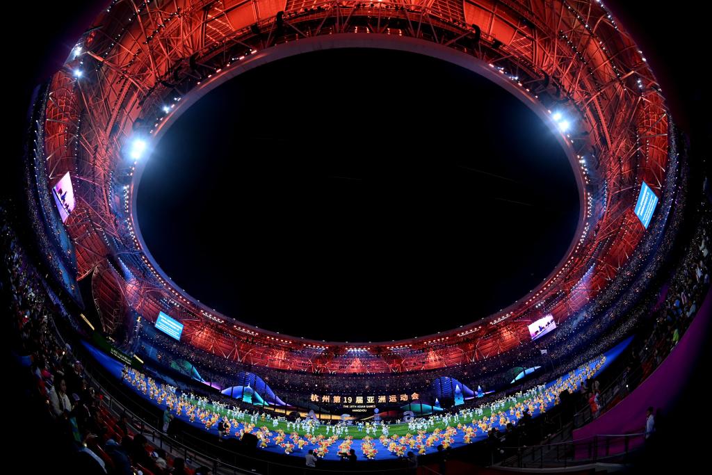 10月8日,演员在闭幕式上表演。当日,杭州第19届亚洲运动会闭幕式在杭州奥体中心体育场举行。(新华社记者黄宗治摄)