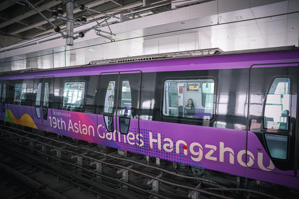 2023年5月16日,杭州地铁“亚运号”专列正式上线运行。新华社记者 江汉 摄