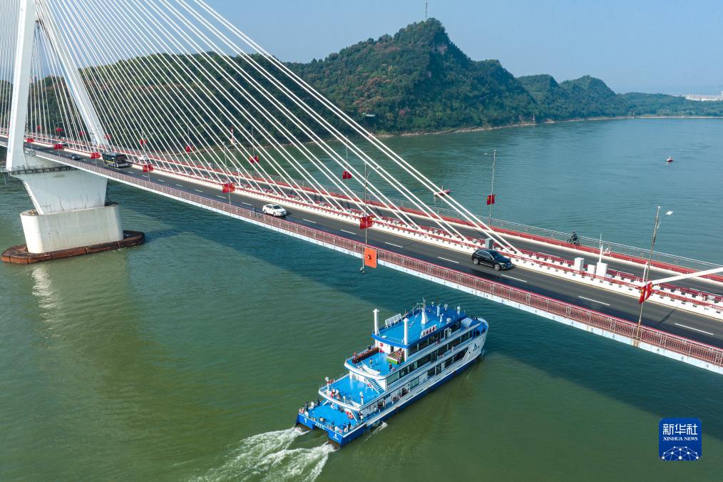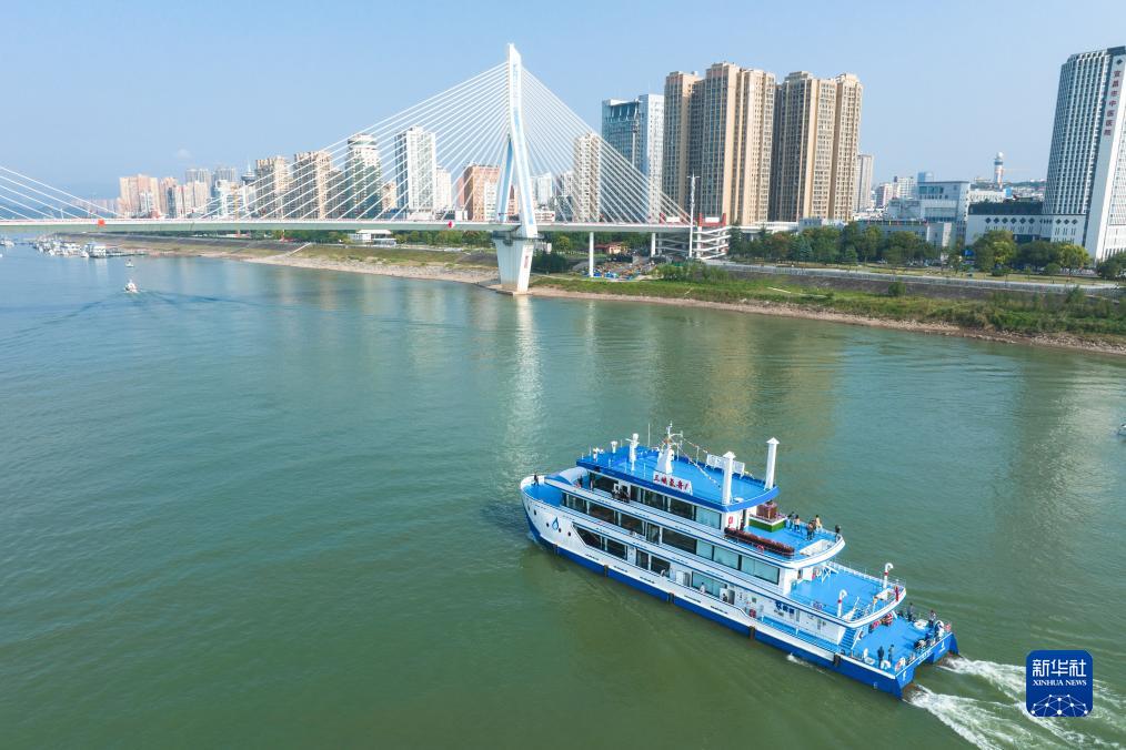 10月11日,“三峡氢舟1”号行驶在长江湖北宜昌水域。新华社记者 肖艺九 摄