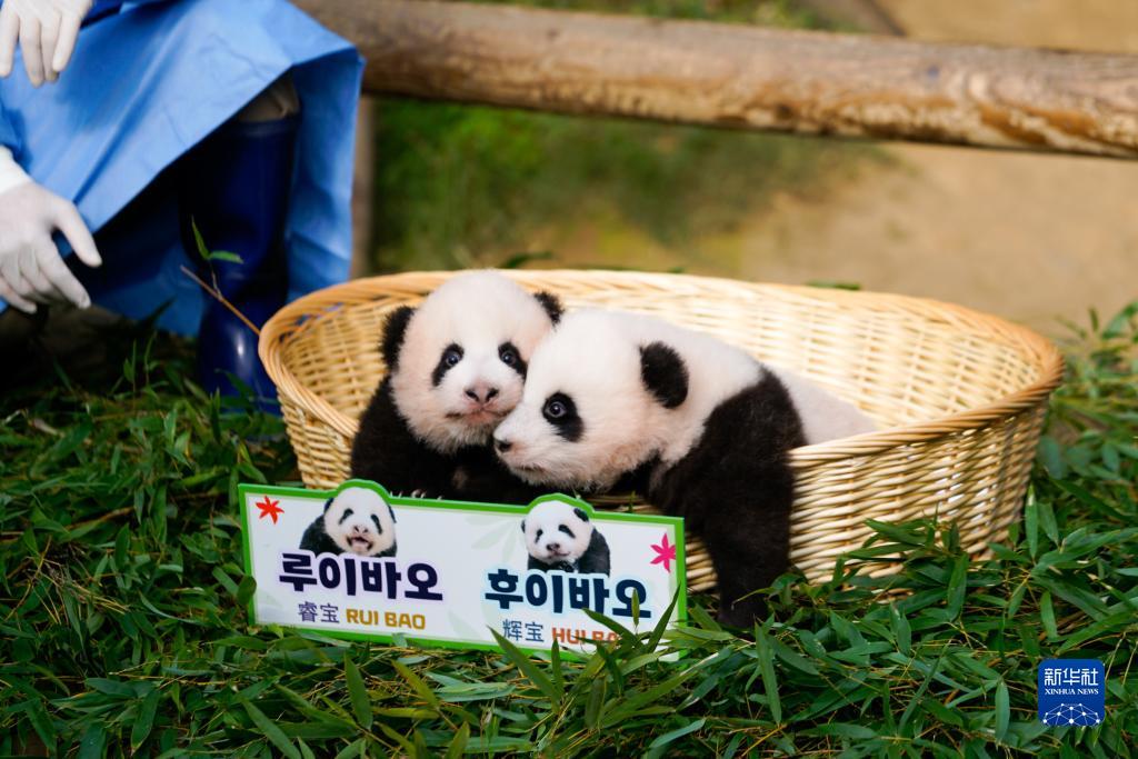 在韩国出生大熊猫双胞胎“睿宝”“辉宝”与公众见面