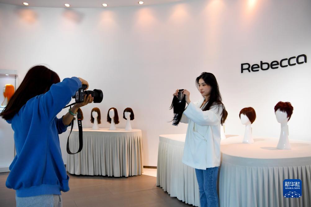 10月11日,工作人员在河南瑞贝卡发制品股份有限公司的展厅内拍摄产品。