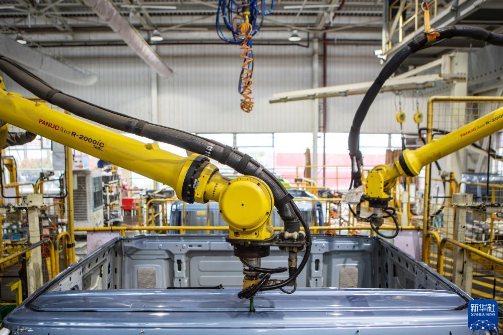 9月26日在位于重庆市两江新区的上汽红岩汽车有限公司总装车间拍摄的自动化生产作业现场。