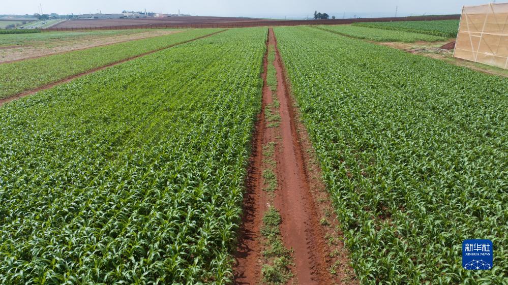 这是10月11日在位于巴西圣保罗州克拉维纽斯拍摄的隆平巴西育种试验田(无人机照片)。