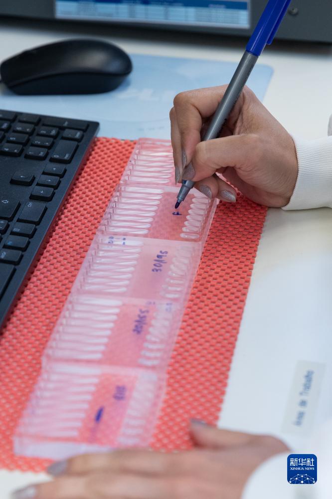 10月11日,科研人员在位于巴西圣保罗州克拉维纽斯的隆平巴西分子生物实验室内为育种进行编号。