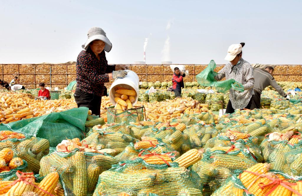 10月10日,河北邢台市南和区河郭镇辛庄村农民在收储玉米。新华社记者朱旭东 摄