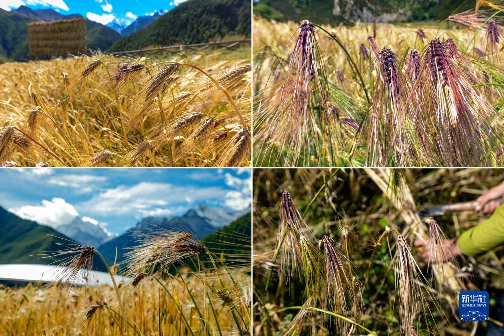 这张拼版照片显示的是10月12日在四川甘孜藏族自治州稻城县亚丁村拍摄的待收割的青稞(左上、右上由新华社记者黄晓勇摄;左下、右下由新华社记者沈伯韩摄)。