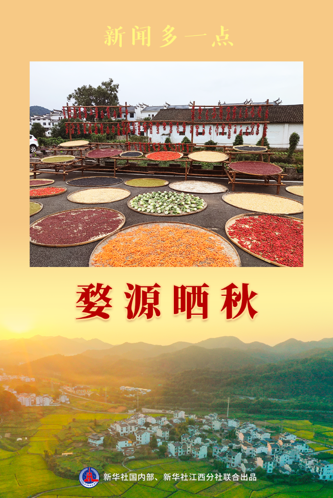 近日,江西省上饶市婺源县秋口镇王村村民晾晒的农作物。新华社记者 刘佳敏 摄