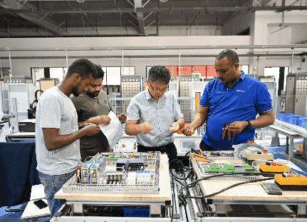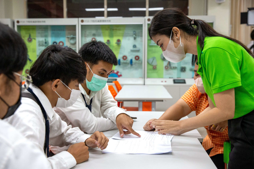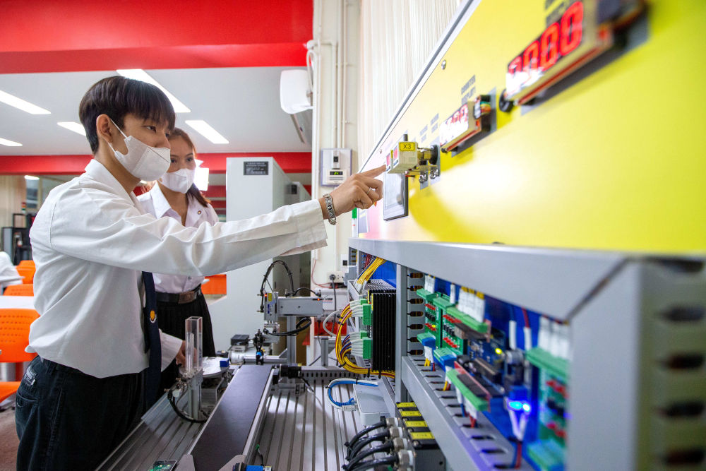 ↑泰国学生在大城技术学院内的鲁班工坊学习交流