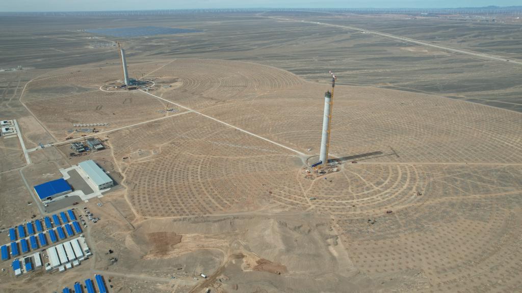 建设中的三峡能源三峡恒基能脉瓜州70万千瓦“光热储能+”项目。(徐萌 摄)