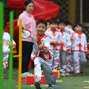当日,天津市和平区第五幼儿园举行秋季趣味运动会,通过旱地龙舟等具有特色的游戏项目,让孩子们在运动中感受童趣与欢乐。