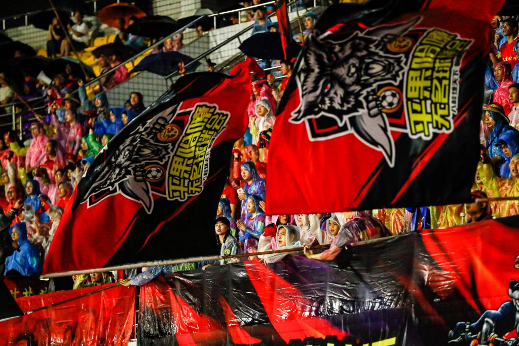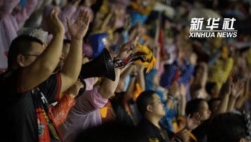 9月3日晚,在广西平果举行的2023赛季中国足球协会甲级联赛第21轮比赛中,广西平果哈嘹队主场以1比1战平无锡吴钩队。球迷在现场为球队加油助威。