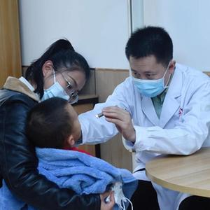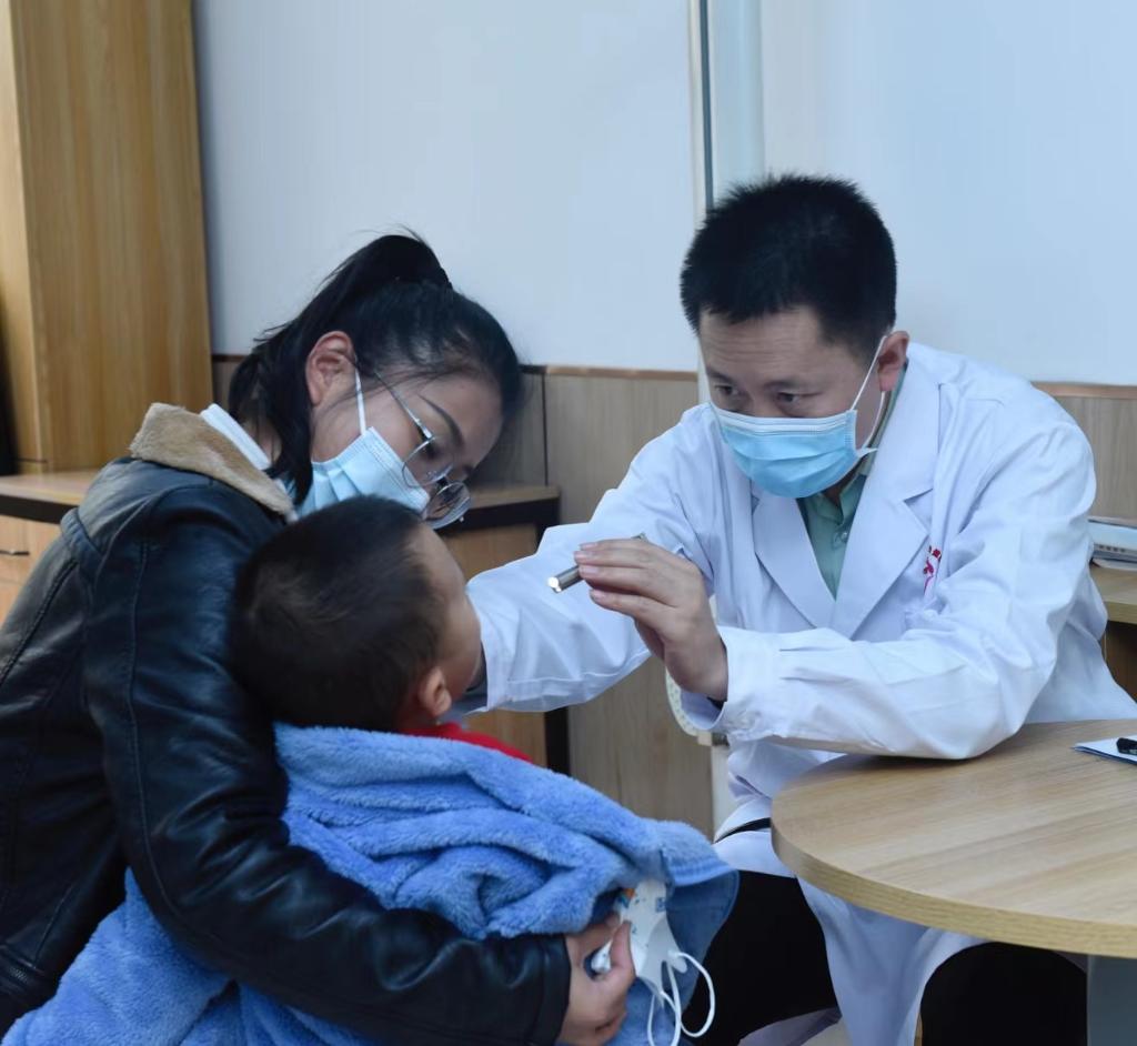 天津市儿童医院呼吸科主任医师郭伟正在为患儿诊治。(资料图片)(受访者供图)
