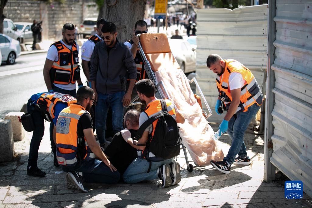 10月13日,在耶路撒冷老城,一名在冲突中受伤的男子接受医治。