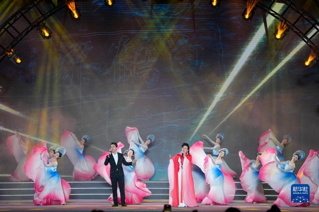 10月13日,在重庆涪陵举办的2023白鹤梁旅游文化节开幕式上,演员表演歌舞。