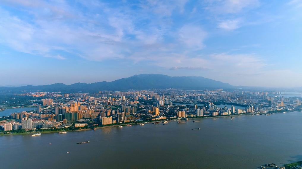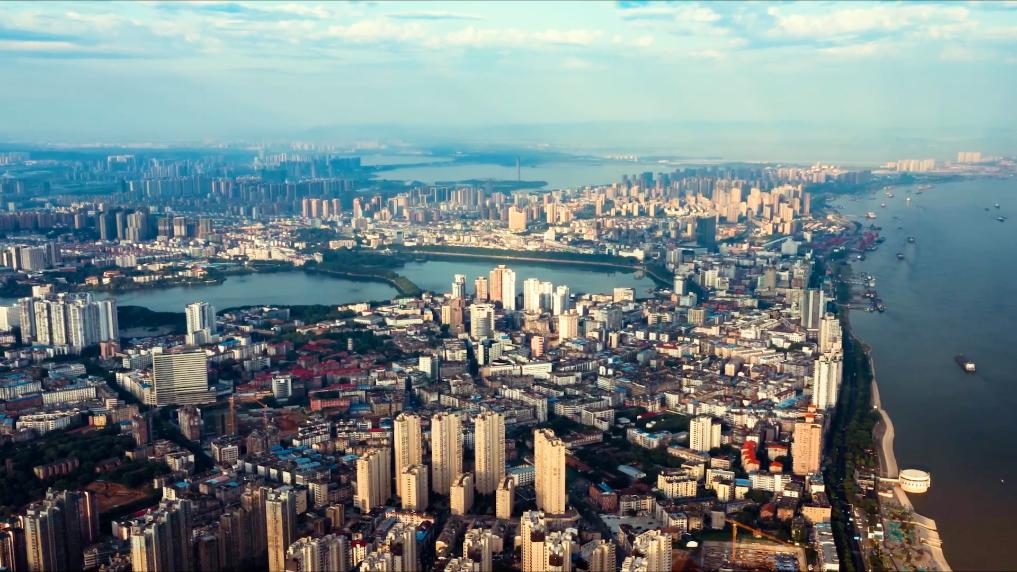 九江旧名浔阳,长江流经九江段被称为浔阳江。秋高气爽,俯瞰浔阳江畔,秋水长天一色,两湖长堤相印,风景美如画。