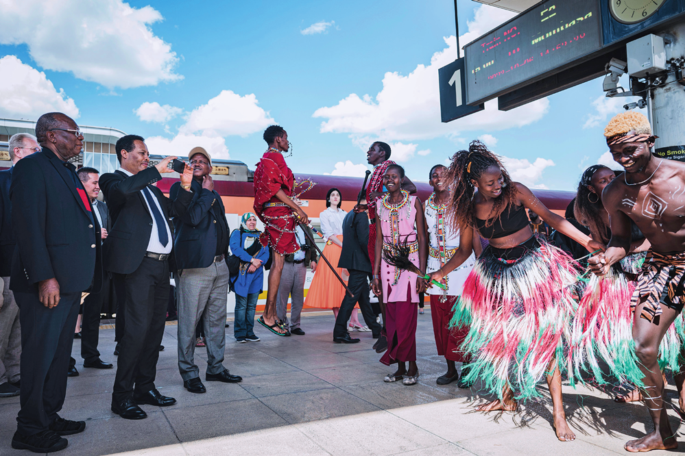 多国驻肯使节在肯尼亚内罗毕的蒙内铁路内罗毕站观看文艺演出(2023 年 10 月 6 日摄) 王冠森摄 / 本刊
