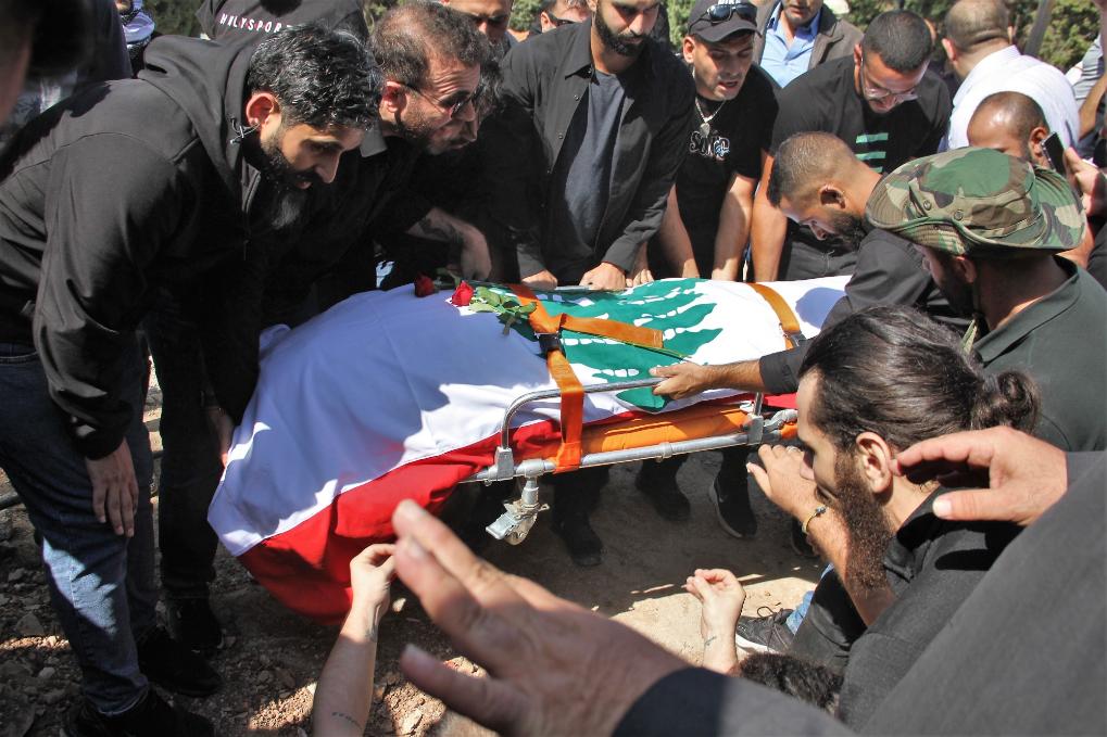 10月14日,黎巴嫩南部希亚姆镇,黎巴嫩记者和民众为在以色列轰炸中死亡的摄影记者伊萨姆·阿卜杜拉送葬。新华社发(塔希尔·阿布·哈姆丹摄)