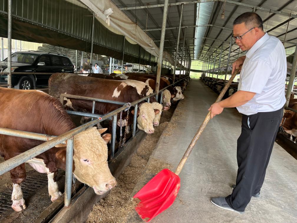 经过村委会仔细讨论研究,大家寻思在山里养牛或许能赚钱,区农业农村局有建养牛场的经费,村党支部副书记欧阳枞有10多年养牛经验。2021年,村委会筹资在山坡上建了养牛场,脱贫户有获得小额贴息贷款的资格,村里便利用这一优惠政策贷了100万元,以吸纳村里20户脱贫户入股分红。
